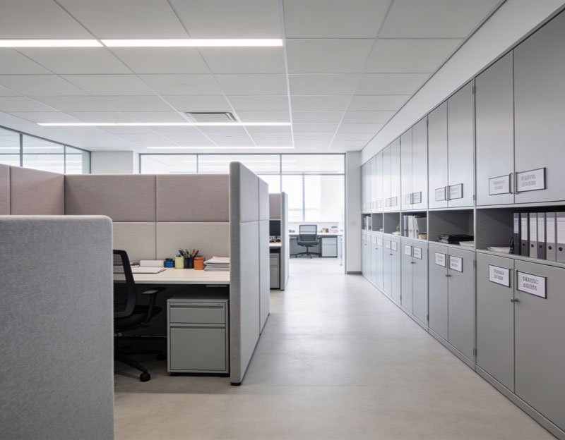 When an office layout supports daily tasks, productivity improves naturally without forcing changes in how teams work. Storage solutions may also include commercial cabinet installations and built-in office cabinets where additional organization is needed.