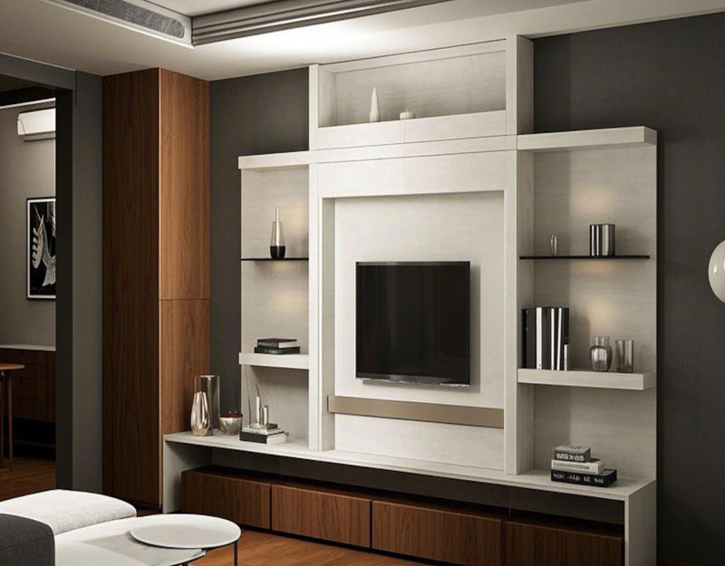 Open shelving works well for books and decorative items. Closed cabinetry hides components and reduces visible clutter. Many projects combine both to maintain balance.