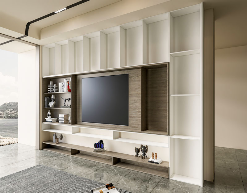 Living rooms frequently include recesses beside fireplaces or niche walls that are difficult to furnish. Built-in entertainment center cabinets can be designed to fill these spaces precisely, transforming unused areas into structured storage.